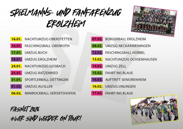 Fasnet 2025 … wir sind wieder on Tour! Unser Programm für die Saison 2026: